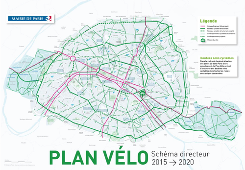 En 2015, un plan visant à développer la pratique du vélo a été adopté par Paris. En effet, le vélo ne représente pour le moment que 3% des déplacements effectués intra muros. L’objectif est d’atteindre, d’ici 2020, les 15% afin de réduire le bruit et la pollution urbaine. Pour arriver à ce résultat, la ville prévoit d'intervenir sur plusieurs plans :
